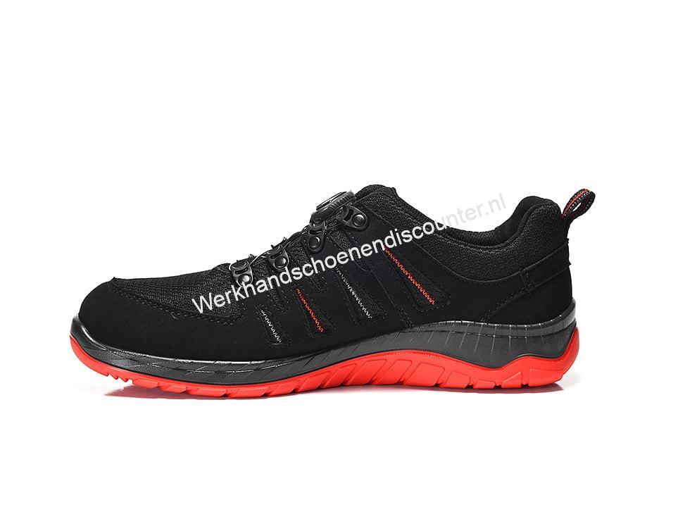 Moderne voetbescherming op zijn best. De beste beschermende eigenschappen, optimaal draagcomfort en een strak design. De MADDOX BOA black red Low ESD S3 biedt alles wat een moderne veiligheidsschoen moet hebben. Als lid van de ELTEN WELLMAXX-serie zijn optimale dempingseigenschappen een vanzelfsprekendheid. Dit wordt gewaarborgd door de zoolkern van het innovatieve materiaal Infinergy ® van BASF, dat een groot deel van de energie die tijdens het lopen wordt gebruikt, teruggeeft aan de drager. Dit voorkomt vermoeidheid van de voeten en beschermt de gewrichten blijvend. Een evenwichtig schoenklimaat wordt gewaarborgd door het bovenmateriaal van hydrofobe microvezels en textiel, en de ademende binnen voering. Dankzij het BOA® Fit System zit deze sportieve en strakke S3 veiligheidsschoen snel en precies aan de voet. De schoen kan snel aan- en uitgetrokken worden en veters zijn verleden tijd! Veiligheid blijft op nummer een staan bij de veiligheidsschoen MADDOX BOA® black red Low ESD S3: de stalen neus en metaalvrije tussenzool beschermen de voeten tegen gevaren van boven en onderaf. Daarnaast zorgt de SRC-gecertificeerde buitenzool MAXXIMO altijd voor een goede grip. De ESD-gecertificeerde lage veiligheidsschoen is verkrijgbaar in de maten 35 t/m 48.