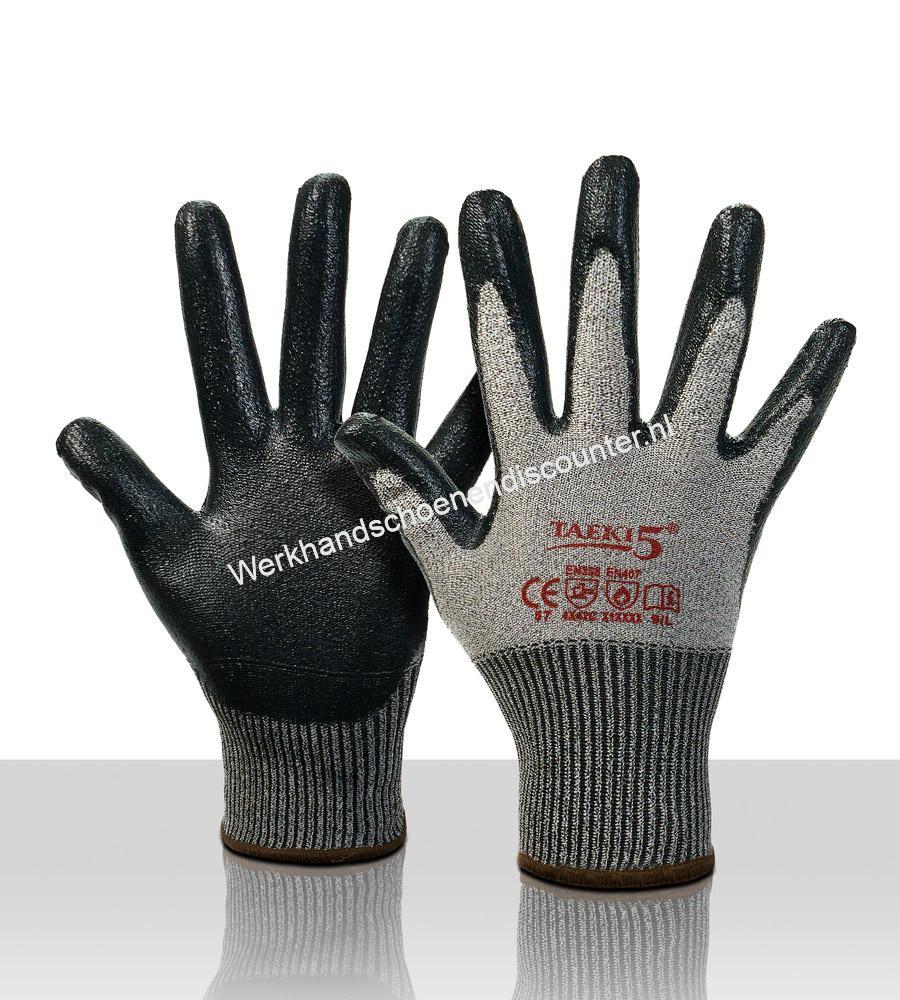 Werkhandschoen TEAKI 5 Nitril coating op dyneema naadloos gebreide onderhandschoen. EN 388 Beschikbaar in maten 9, 10 Type: Taeki5